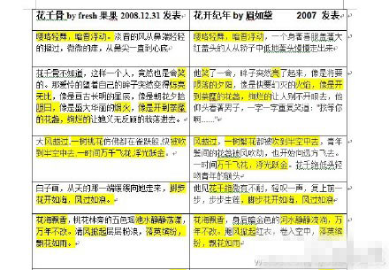 近日,有网友贴出了《花千骨》原著小说部分内容与其他网络小说内容的对比图,并将相似部分标出,质疑该书抄袭多部网络小说,包括《花开不记年》、《箫声咽》等,同时指出这部小说卖了影视版权,会涉及盈利,因此希望作者“Fresh果果”给予回应。该质疑经媒体报道后迅速发酵,引起广泛讨论。