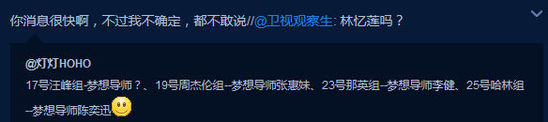 另外,有指汪峰组的梦想导师是林忆莲。不过,此前,也有称邓紫棋或是四位梦想导师中的一位。