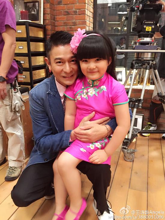 8月20日,王诗龄微博晒出一张与刘德华和李宇春的合影照,照片中小美妞戴着一个粉色的发卡,身穿桃红色的旗袍,显得非常精致可爱。一旁的刘德华打扮的潮范儿十足,他亲切地将王诗龄抱在怀中,两人面对镜头开心合影。
