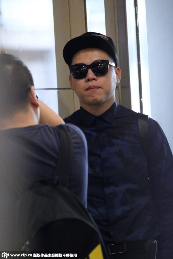23日,胡彦斌现身首都机场,他面遮黑超一路低头看手机,发现有人拍照时,快闪离开机场。