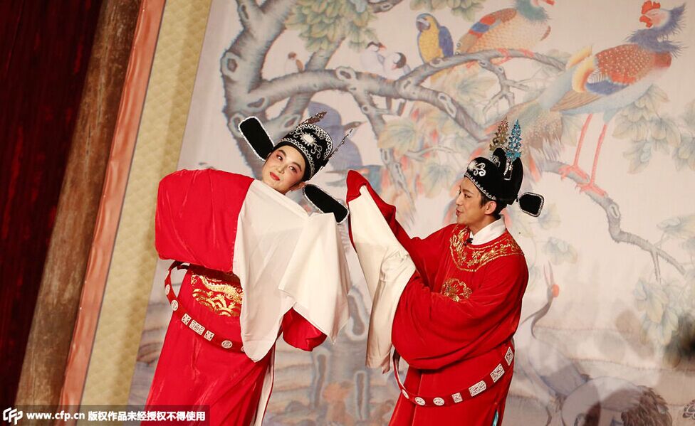 近日,《偶像来了》进行最后一场拍摄,众星学唱黄梅戏,在徽州潜口民宅古戏台进行节目录制。当晚,宁静以主持人身份与观众见面,林青霞、汪涵、何炅、谢娜合演黄梅戏经典唱段《谁料皇榜中状元》,林青霞和谢娜双双穿上红色状元戏服“斗艳”,林青霞“教主”摇身一变成状元依旧威风凛凛,谢娜的男装扮相也是英气十足,尤其是那古灵精怪的表情令这场戏成最大看点。