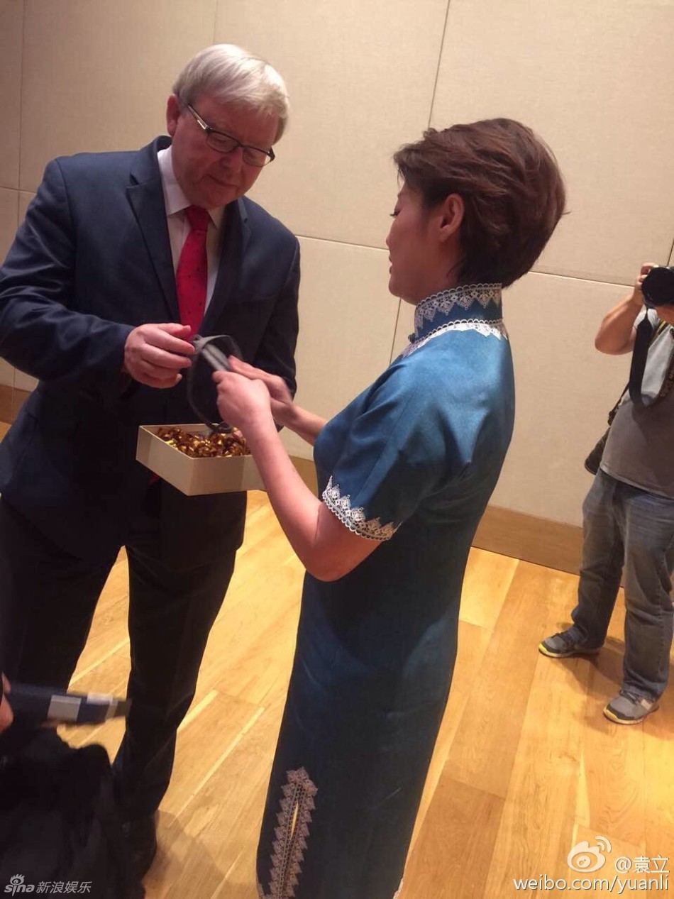 袁立向陆克文总理赠送礼物