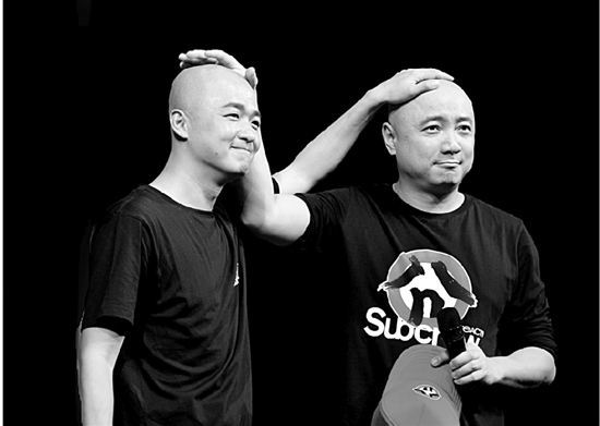 徐峥乖乖地摘掉了帽子,露出光脑袋。