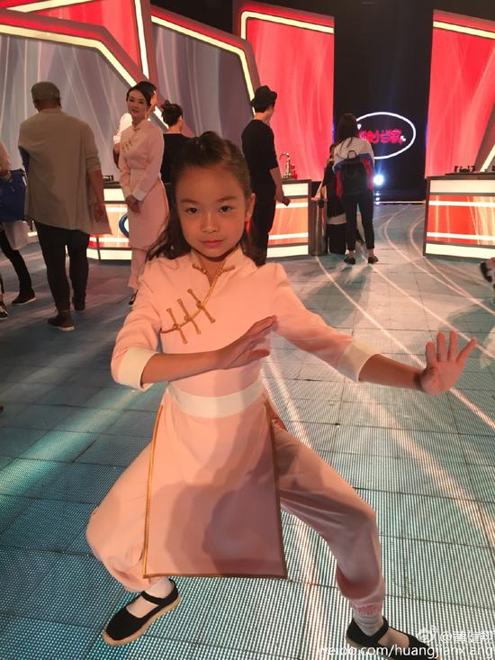 黄健翔在微博上写道,“闺女,你这是要干嘛?咱桃花岛的功夫起手可不是这样啊”,还晒出了女儿练功夫的照片。照片中,黄健翔女儿穿着一套粉红色的功夫装,摆出一副要