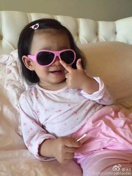 9月23日22点25分,大S通过微博晒女儿小玥儿酷照,并写道:“这孩子已经有老天爷疼爱了!”照片中,小玥儿头上戴着漂亮的小发夹,黑超遮面,一手扶着镜框,笑着露出可爱的小乳牙,另一只手拿着棉签,半躺在床上,酷酷的样子萌翻众网友。
