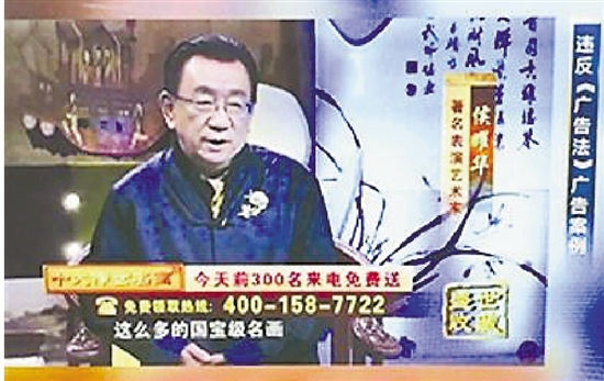 在央视播出的画面中,曝光了侯耀华向消费者推荐所谓的“十大传世名画”,实际上是印刷品的行为;同时,李金斗的“金斗寻宝”也受到了央视的批评,涉嫌在广告中使用绝对化用语,欺骗了消费者。
