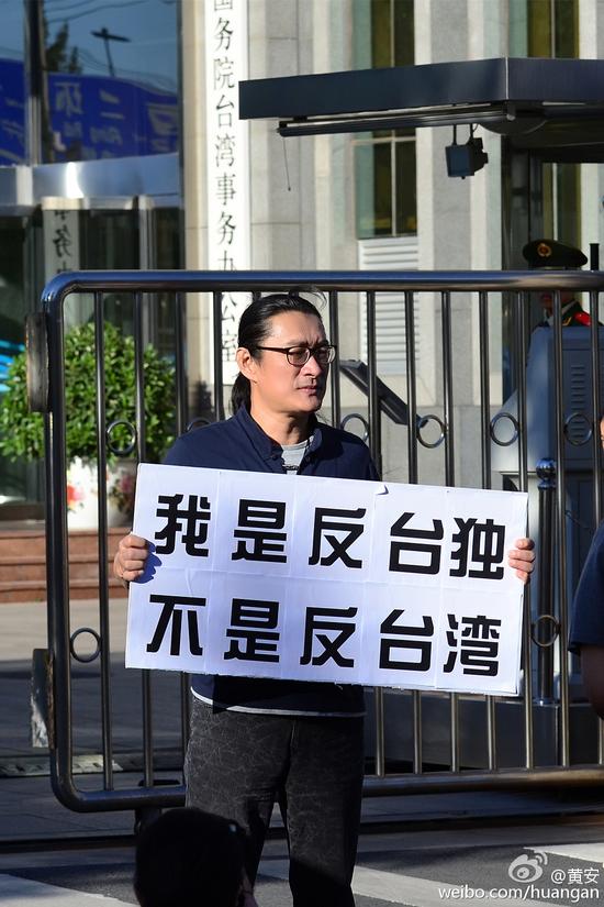 台湾歌手黄安与“台独”言论女网民钟屿晨的论战持续升级。10月8日下午,黄安携实名举报信赴国台办举报涉嫌鼓吹“台独”的女网民钟屿晨,并高举“我是反台独不是反台湾”的手牌,澄清自己并非反台湾。