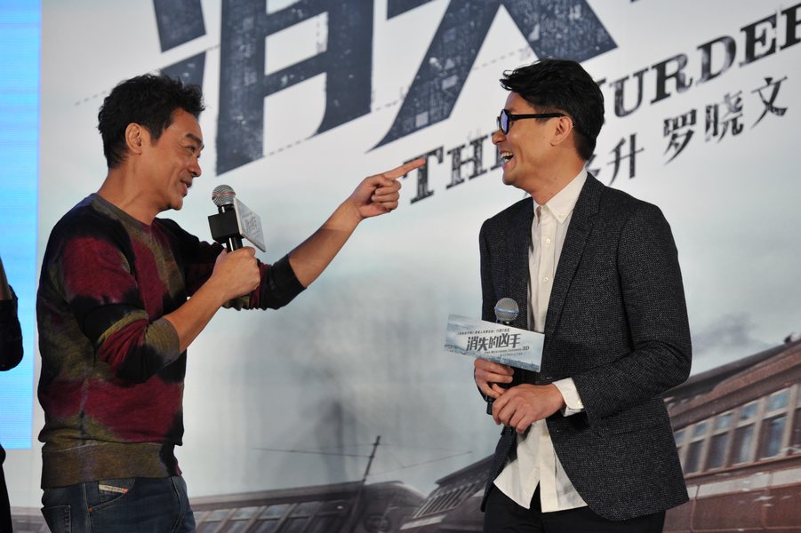 电影《消失的凶手》延续上一部《消失的子弹》人物设置,讲述了刘青云饰演的神探“松东路”来到一个名叫“香城”的地方探寻一宗连环自杀案真相的故事。发布会上,“神探”松东路再次“附体”刘青云,现场为大家分析每个角色的疑点,其中嫌疑最大的是在上集《消失的子弹》中与其交手过的江一燕,在这一集中她从监狱出逃后便案件频发,种种线索皆指向她的杀人动机,江一燕当即表示自己已经是“招黑体质”:“你们尽情怀疑我吧,但我相信导演会向大家证明我的清白。”曾与刘青云有过多次合作的林家栋也难逃一劫,青云当场吐槽他“演过那么多黑帮悍匪,杀人手段肯定很高超”,让林家栋无力辩驳,只得鸣冤:“好不容易这次演了一名大学教授,还说我有嫌疑。”“辣妈”李小璐情急之下便搬出甜馨为自己作证:“她怎么能接受妈妈在电影里杀人呢?”