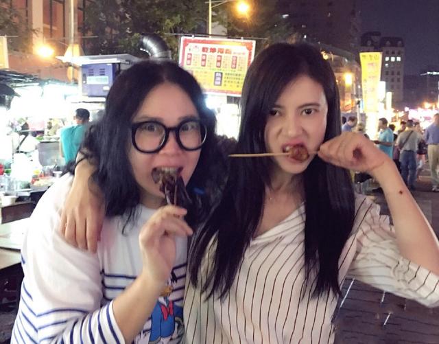 10月26日,高圆圆晒出与闺蜜在台湾游玩的照片。照片中,高圆圆与闺蜜一起品尝台湾美食,她们不但在夜市霸气的吃烤串,还在小吃摊前手牵手摆手指心动作合影。