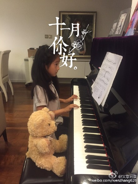 11月2日晚,文章通过微博晒女儿文爱马(文君竹)弹钢琴照,照片中,文君竹披着一头乌黑的长发,端坐在钢琴前,对着五线谱认真弹着钢琴,表情认真,五官清秀,十分漂亮。此次也是文章首次在微博中晒女儿正面照。文章还在微博中向女儿道歉,称:“今天第一次因为功课对你发了脾气,对不起我的宝贝!”